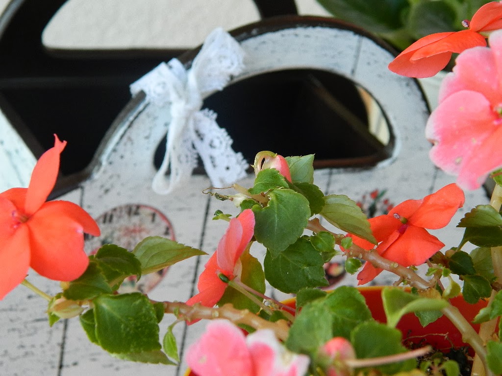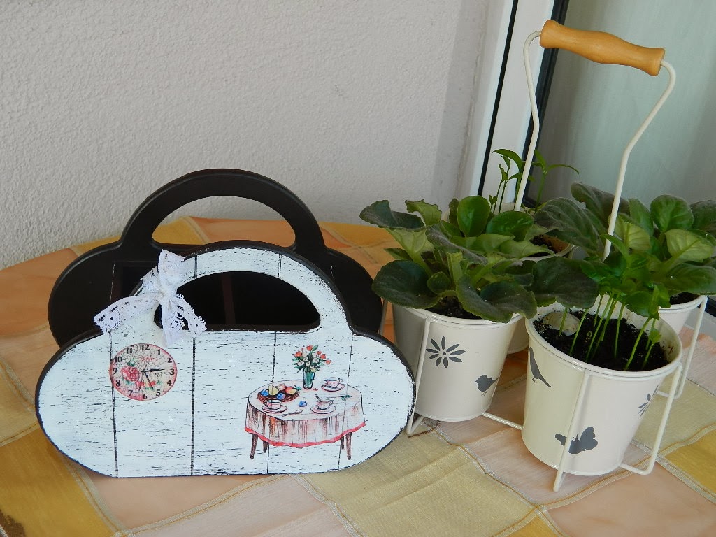 Balkonumun ikinci güzelide bu şirin ev. Üstteki ev parçasına dekupaj yaptım, diğer parçalar sadece boyandı ve hepsi birlikte verniklendi.