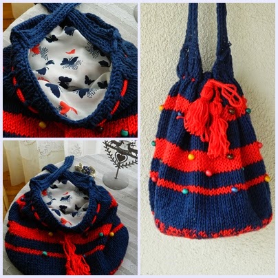 Kızım için evdeki iplerden başladığım örgü çantayı bitirdim, astarının deseni içimi açtı, çok sevdim.